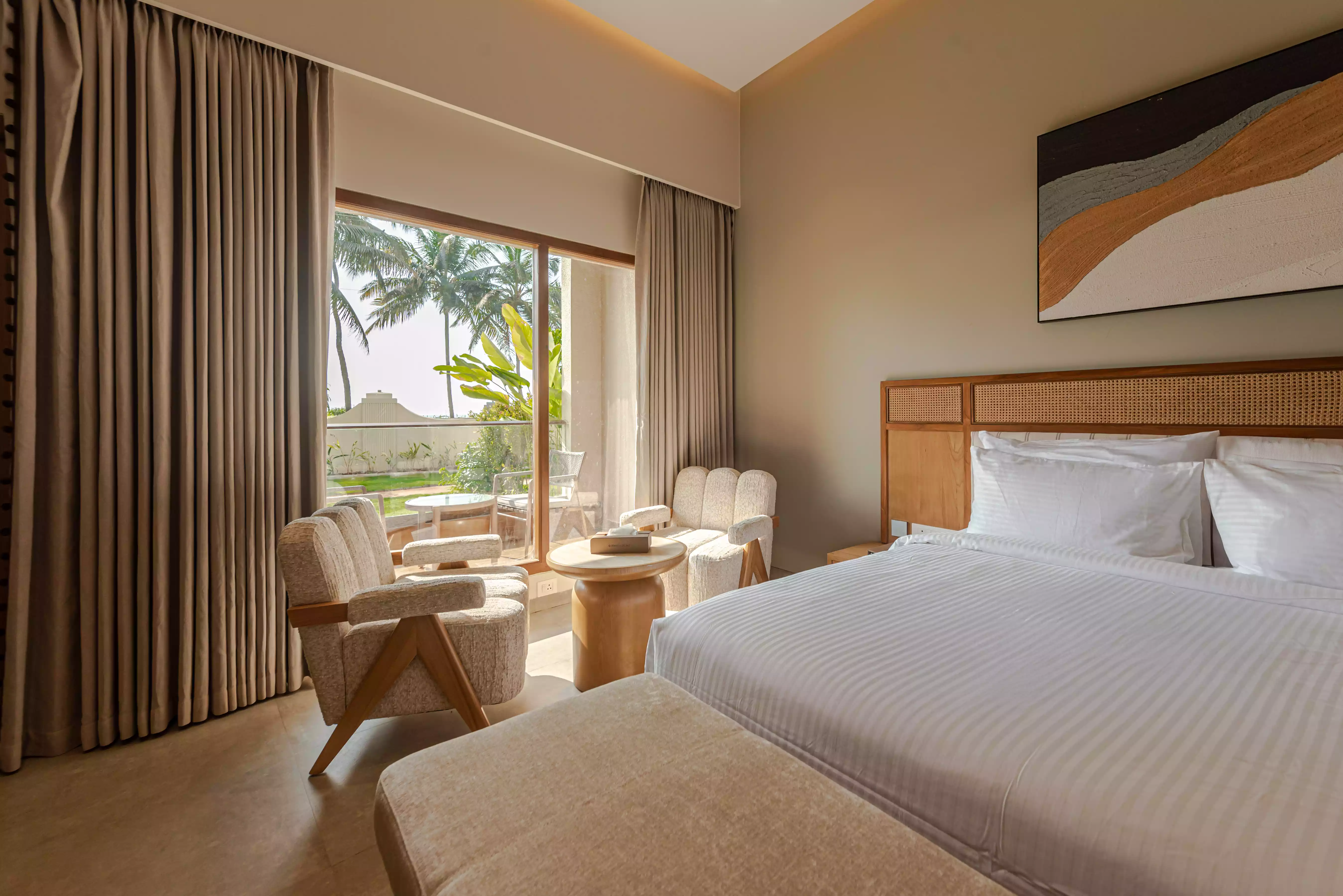 Wake up to uninterrupted views of the Arabian Sea in our Deluxe Sea View Rooms, thoughtfully designed for comfort and calm. Contemporary interiors paired with natural light create a serene coastal escape.